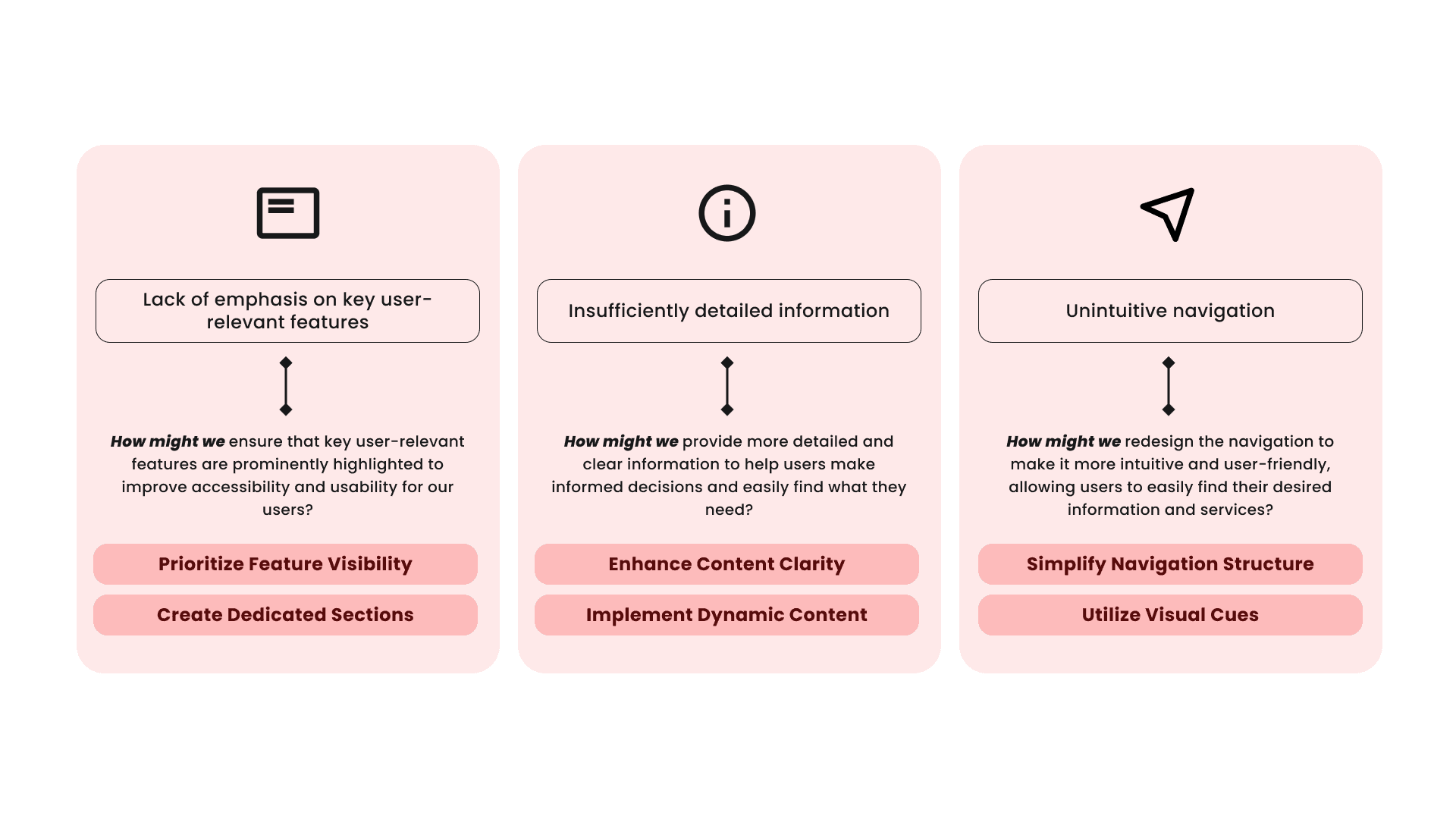 I conducted "How Might We" (HMW) exercises in user experience research to identify opportunities for improvement and to reframe user problems into actionable design challenges. This method helps generate creative solutions by focusing on specific issues while maintaining an open-ended approach, encouraging collaboration and innovation.