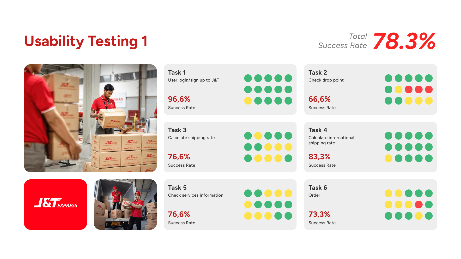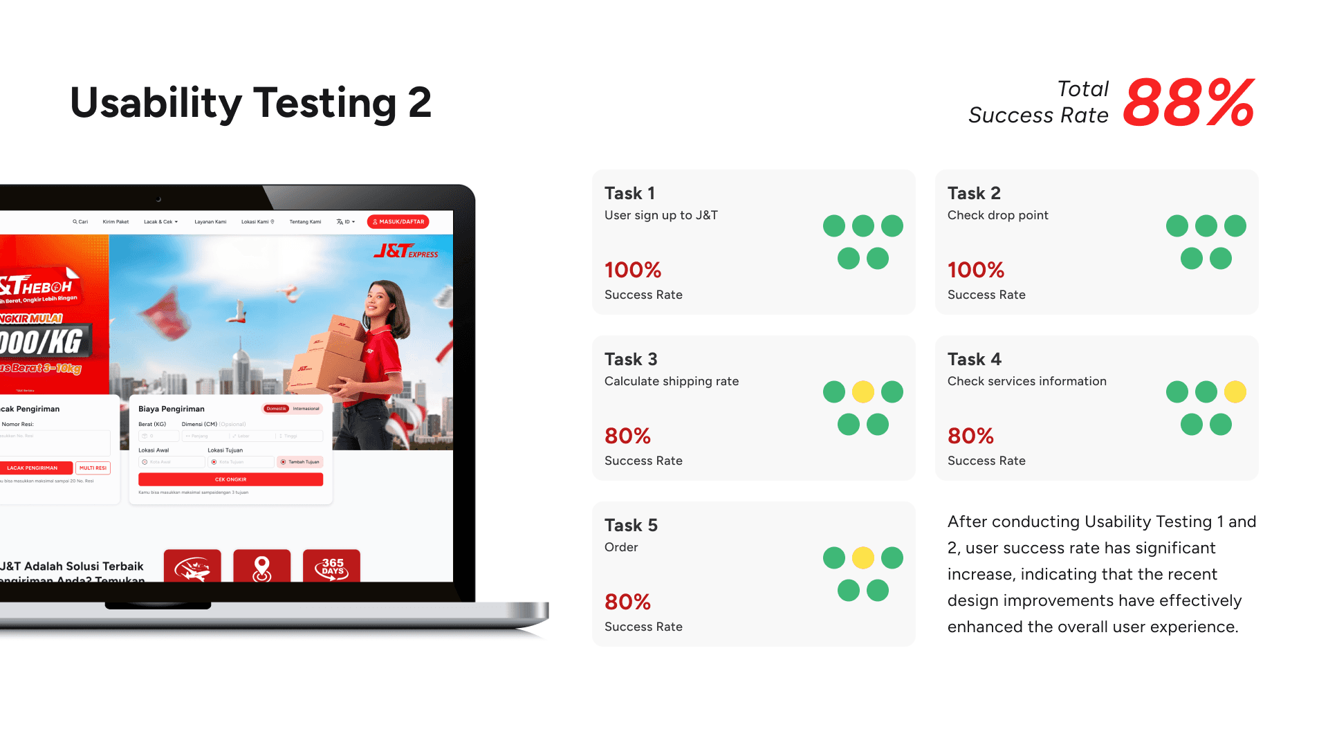 I conducted primary research by assigning several tasks to users to evaluate their experience while using the J&T website. The research revealed that users still faced difficulties with certain features, particularly in tasks 2, 3, 5, and 6.