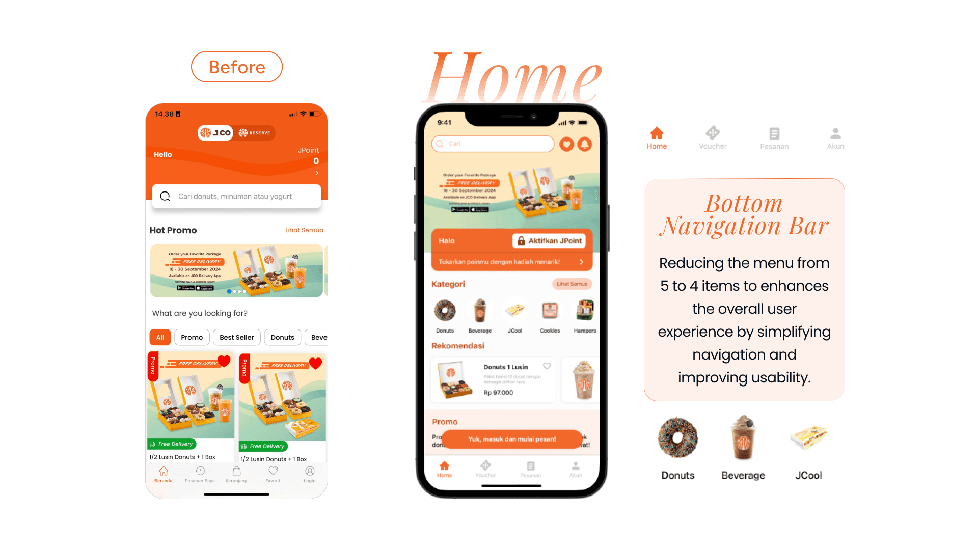 The J.CO mobile app is a digital platform developed by J.CO Donuts & Coffee, a popular coffee and doughnut chain in Southeast Asia, particularly in Indonesia. Despite its popularity, the current J.CO app struggles with user experience issues such as confusing navigation and disorganized product categorization.